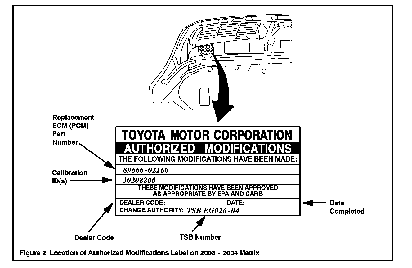 ^ 2003 - 2004 model year Matrix vehicles equipped with the 1ZZ-FE engine produced BEFORE the Production Change Effective VIN shown below.