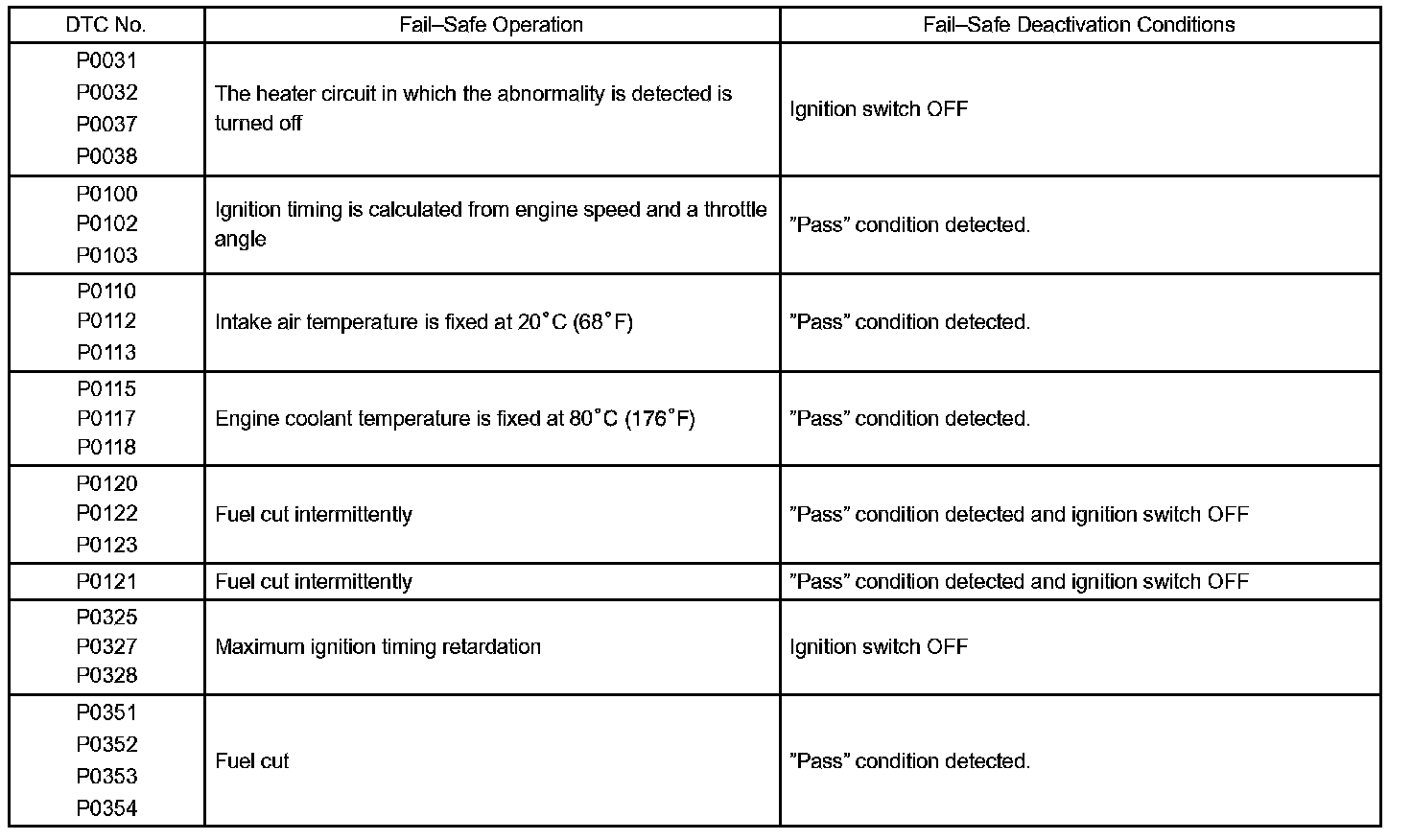If any of the given codes is recorded, the ECM enters the fail-safe mode.