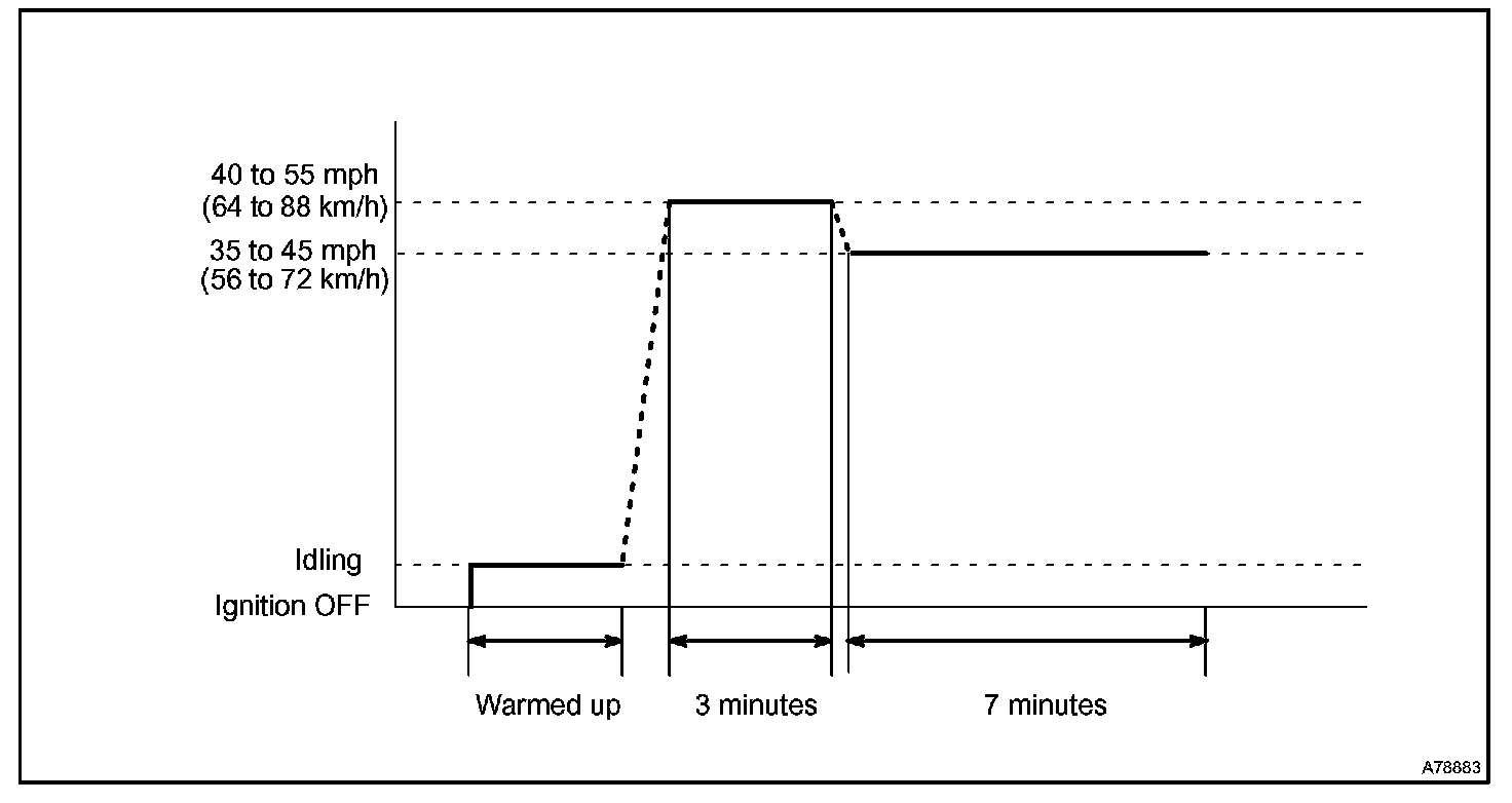 If IAT is less than 50 °F (10 °C) when starting engine, continue to drive vehicle at 40 to 55 mph (64 to 88km/h) for approximately 4 minutes.