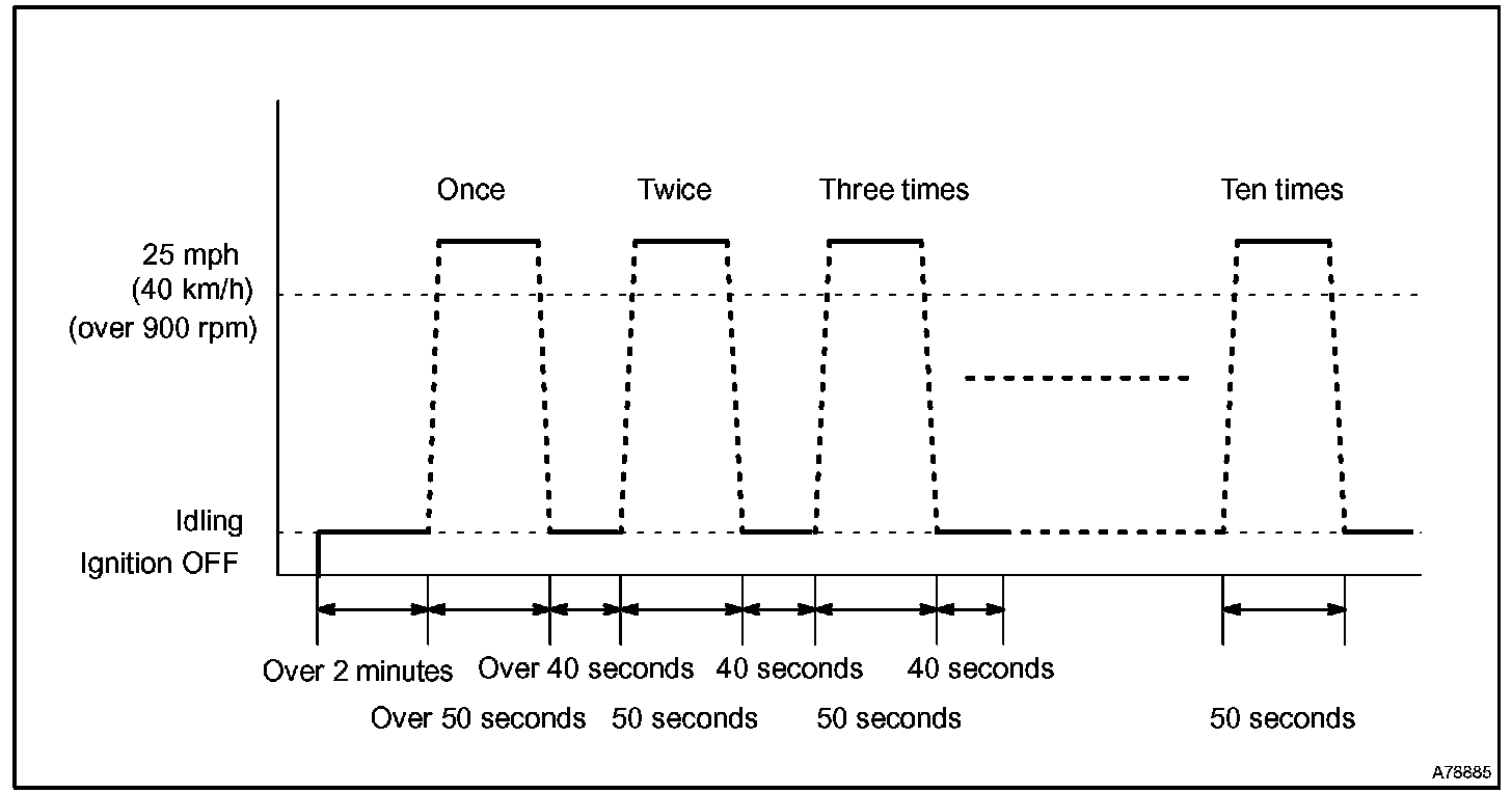 3. Drive the vehicle at 25 mph (40 km/h) or more at least 50 seconds.
