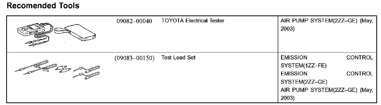 Emission Control - Recommended Tools: