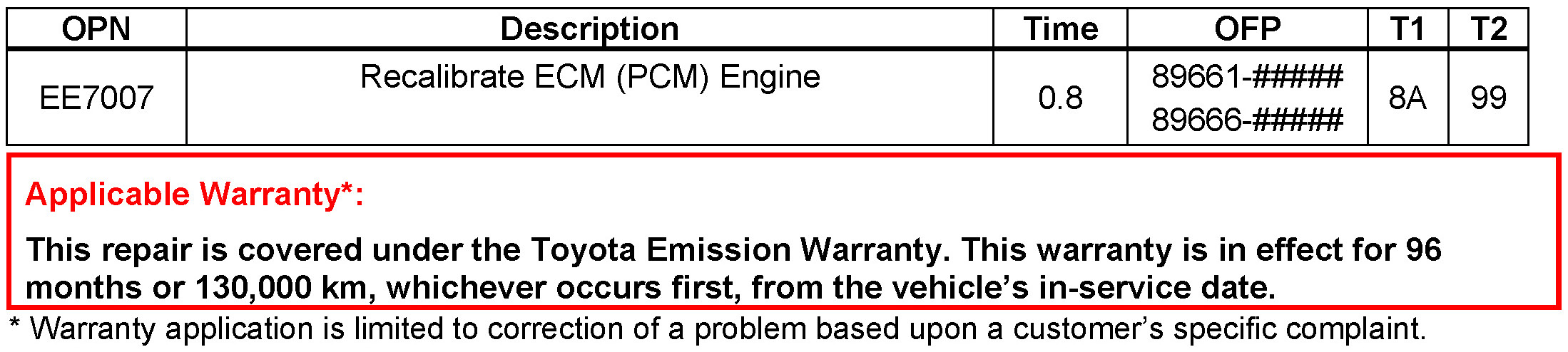 - The ECM (PCM) does NOT need to be replaced as part of the Repair Procedure.