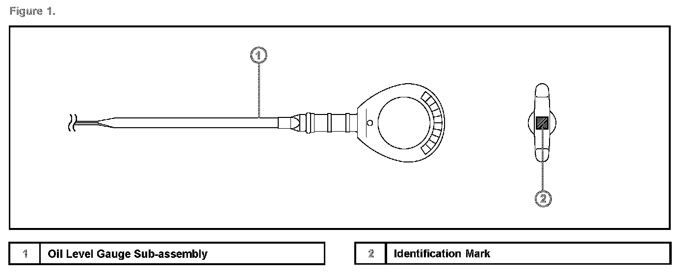 The updated oil level dipstick has an identification mark as indicated in Figure 1.