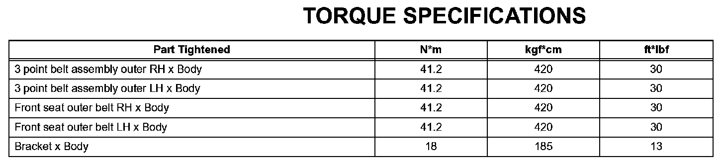Interior - Torque Specifications: