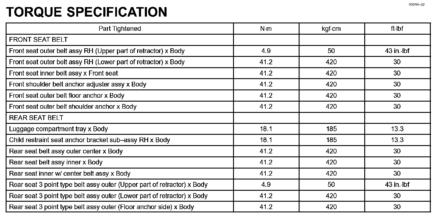 Seat Belt - Torque Specification: