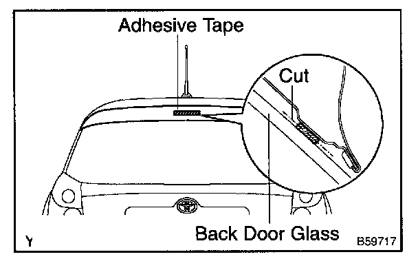 b. Apply new adhesive tape to the back door panel upper outer as shown in the illustration.