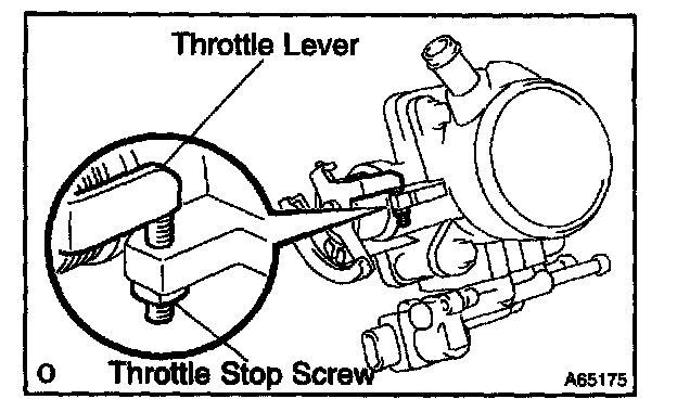 4. Check that there is no clearance between the throttle stop screw and throttle lever at the throttle closed position.