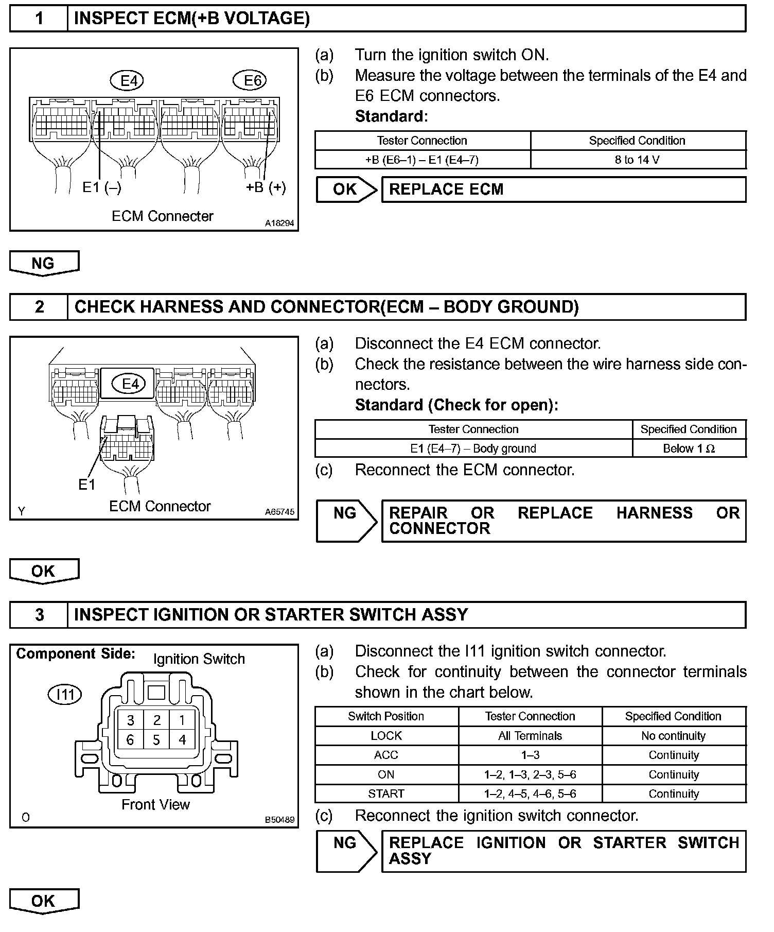 This signal causes current to flow to the coil, closing the contacts of the EFI relay and supplying power to terminal +B of the ECM.