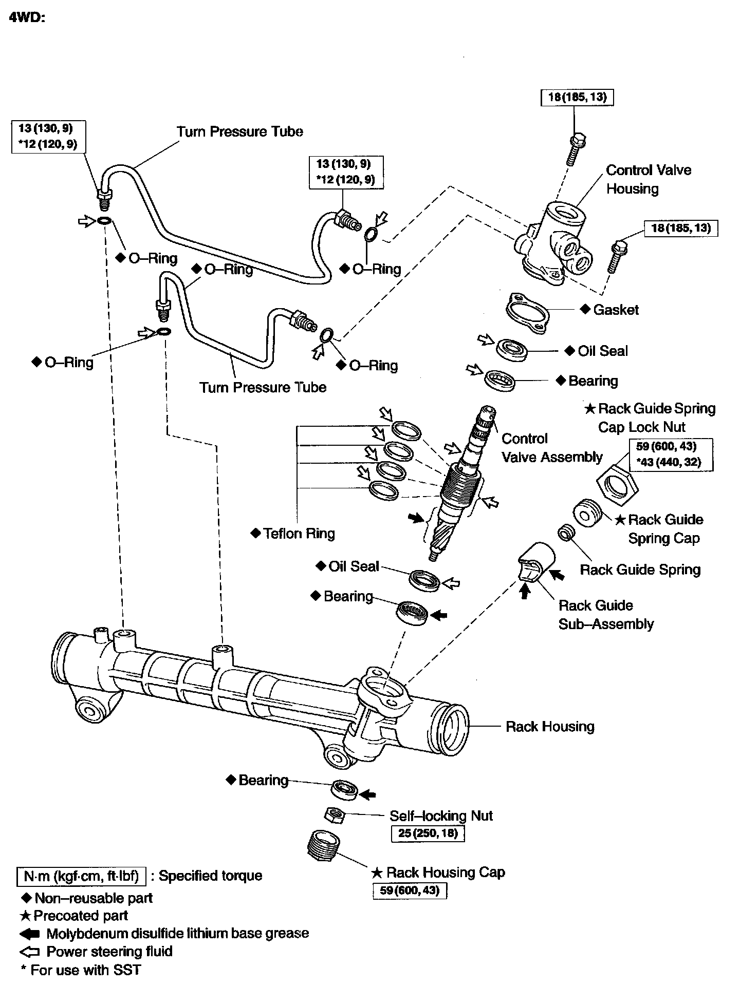 RACK & PINION POWER STEERING GEAR ASSY OVERHAUL W/ RELATED COMPONENTS