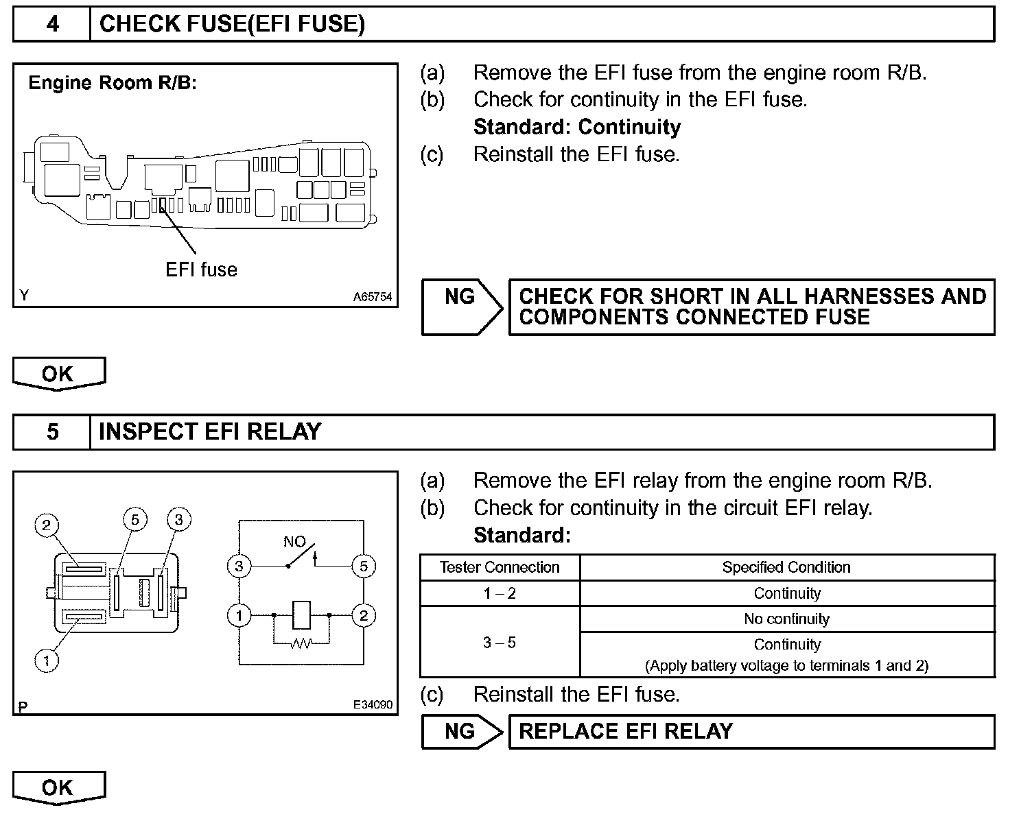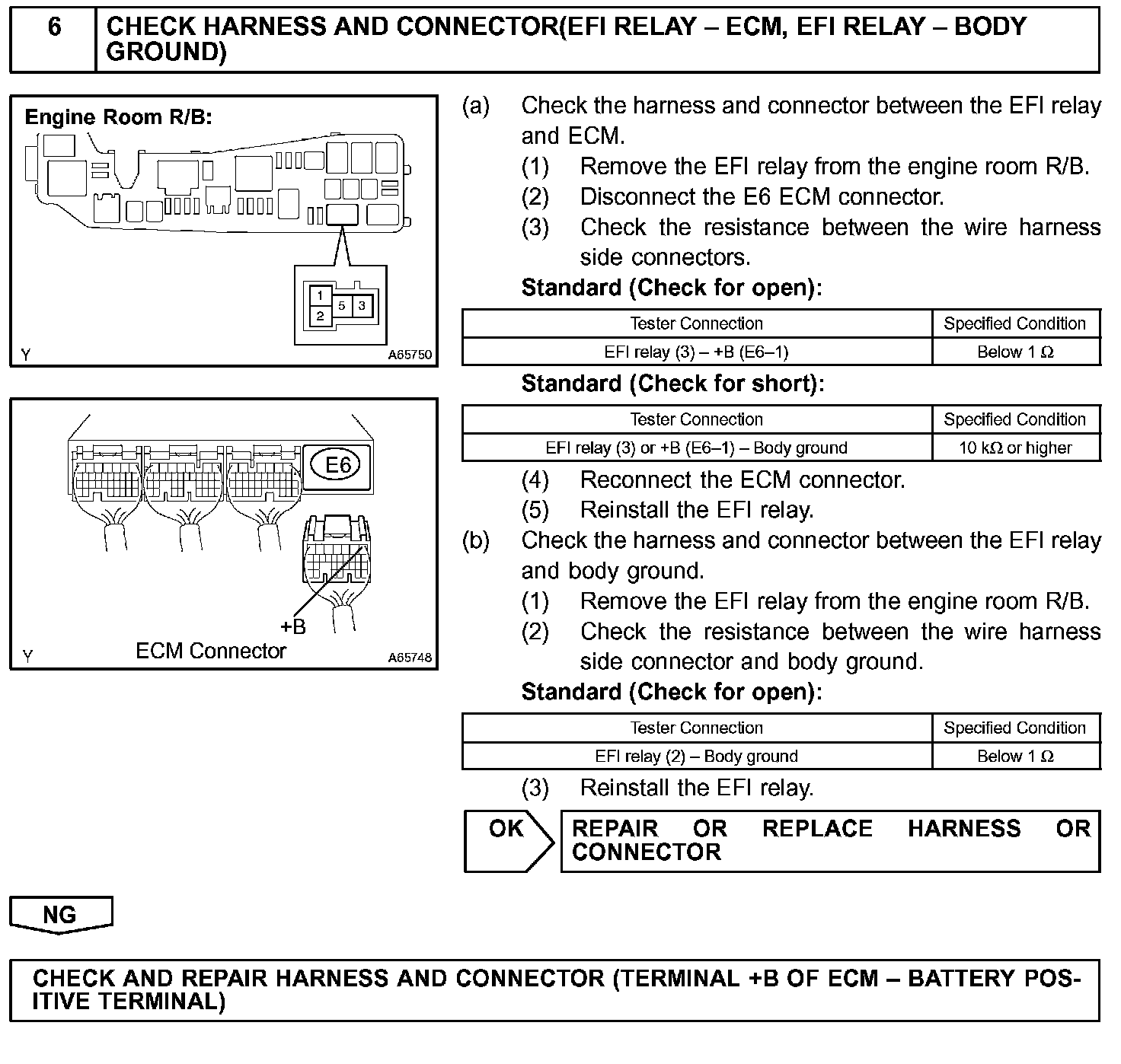 This signal causes current to flow to the coil, closing the contacts of the EFI relay and supplying power to terminal +B of the ECM.