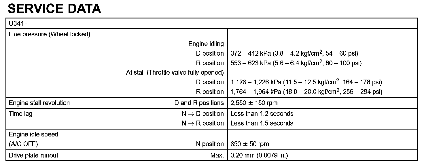 Automatic Transmission/Transaxle - Service Data Part 2: