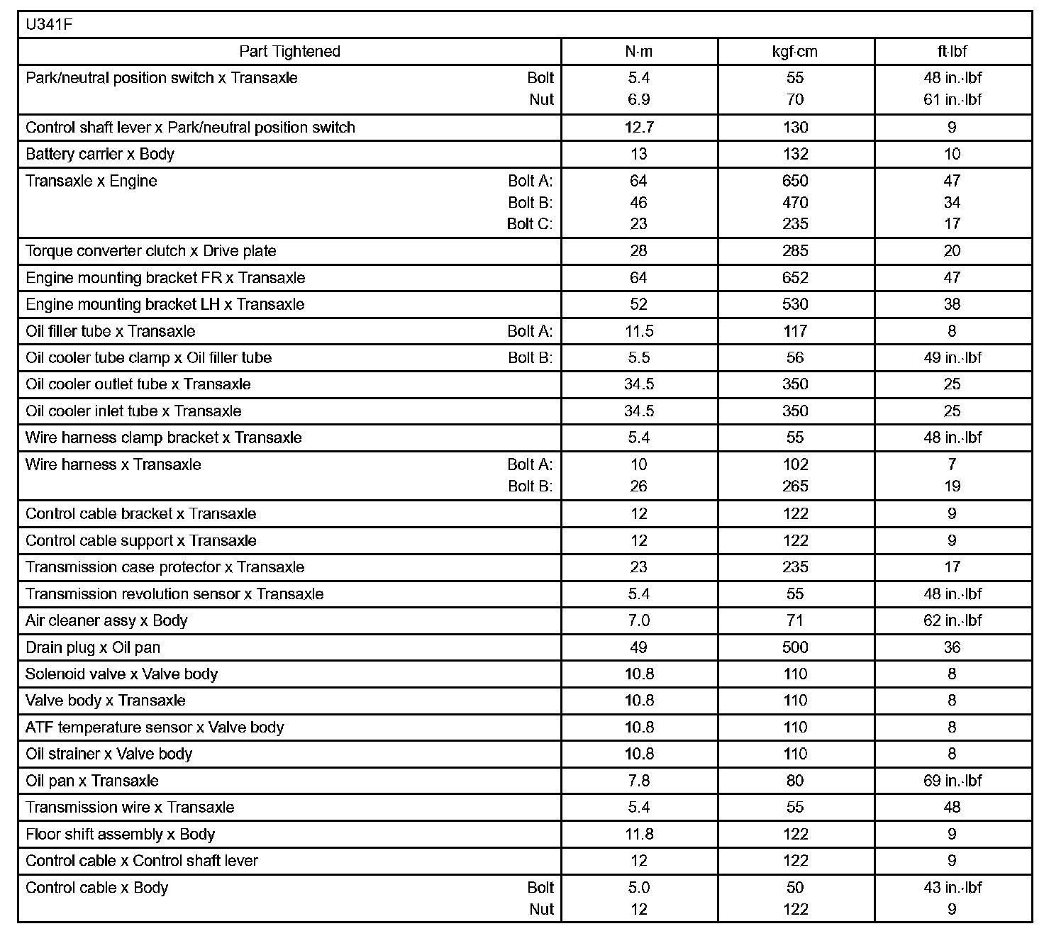 Automatic Transmission/Transaxle - Torque Specification Part 2: