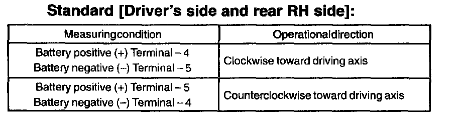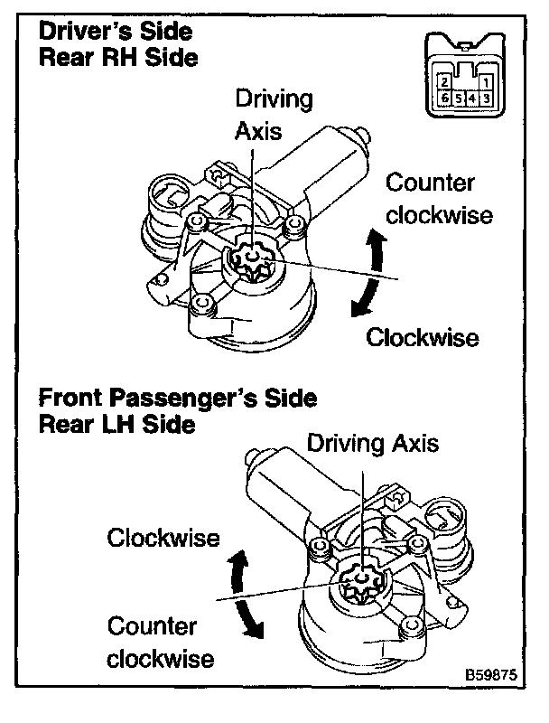- Driver's side and rear RH regulator motors should be inspected in the same procedure.