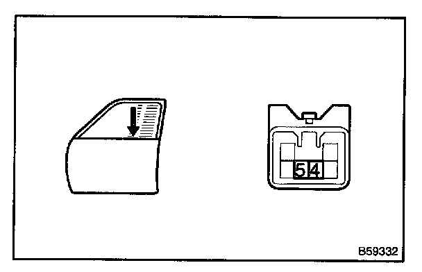 4. When approximately 60 seconds have elapsed after the inspection of the current cut-off, check that the door glass goes down when the power window regulator switch is turned DOWN.