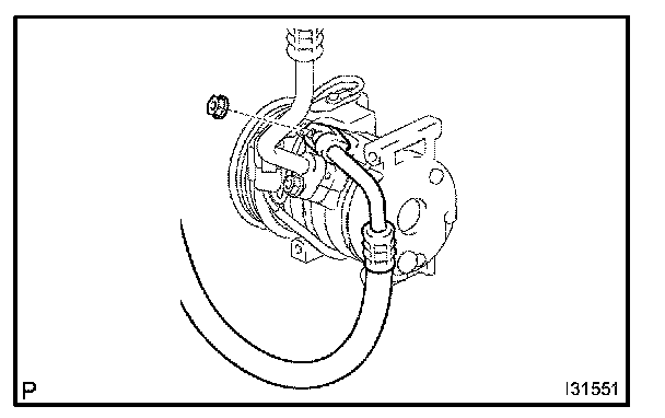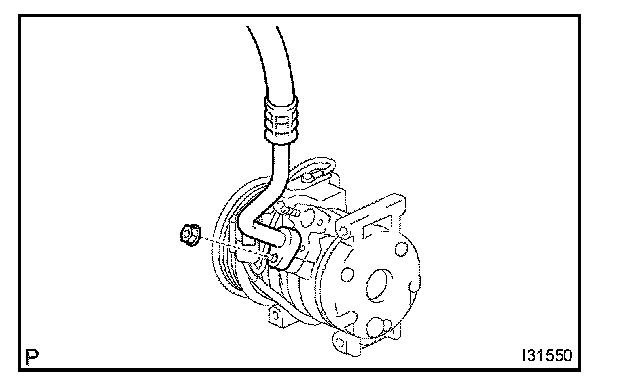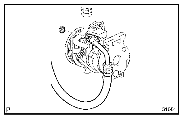 d. Install the cooler refrigerant suction hose No.1 to the compressor and magnetic clutch with the nut .