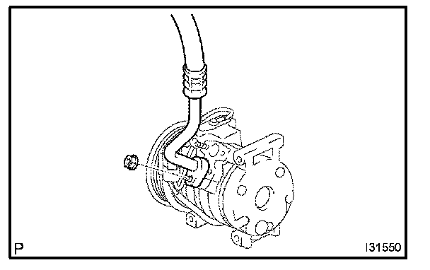 a. Remove the nut and disconnect the cooler refrigerant discharge hose No.1 from the compressor and magnetic clutch.