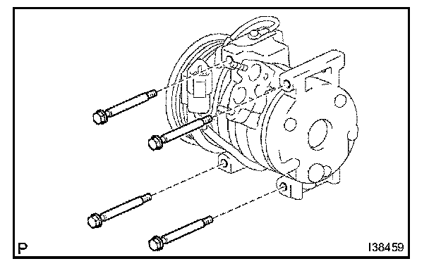b. Remove the 4 bolts and compressor and magnetic clutch.