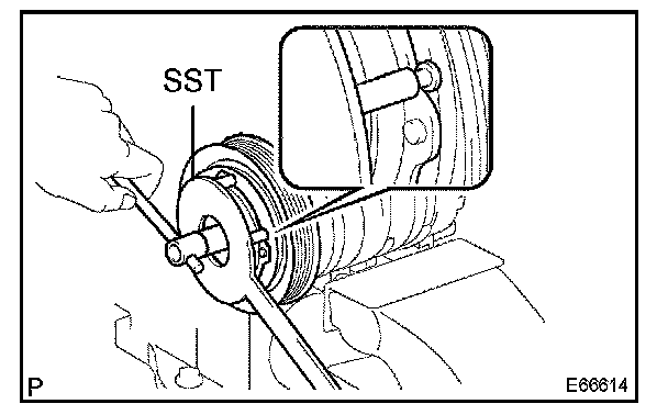 If the measured value is not within the standard range, remove the magnet clutch hub and adjust it with magnet clutch washers.