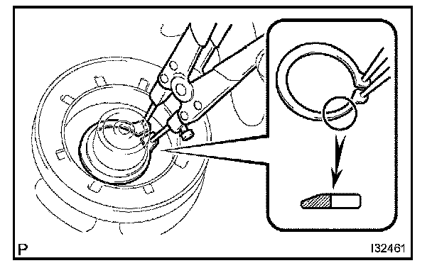 NOTE: Do not damage the seal cover of the bearing when removing the snap ring.
