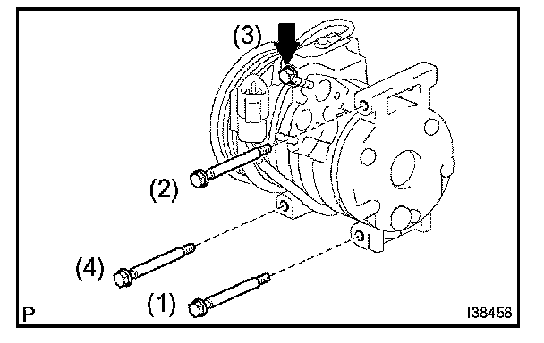 a. Tighten the compressor and magnetic clutch with the 4 bolts.