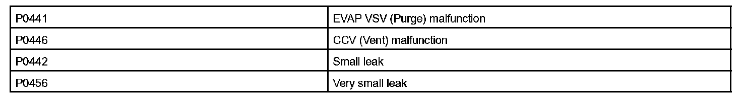 The EVAP system check is an organized method of identifying situations that may cause a monitor to fail. Use the check to troubleshoot the following DTCs.