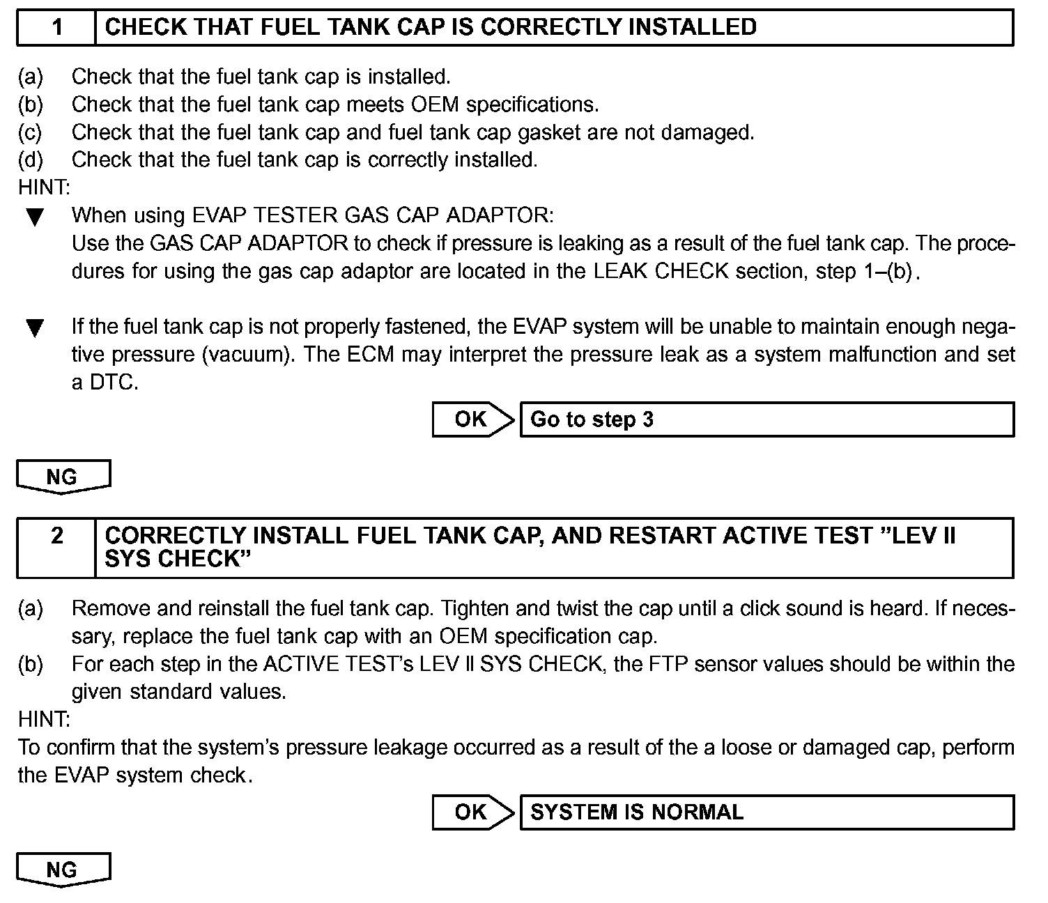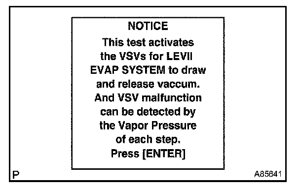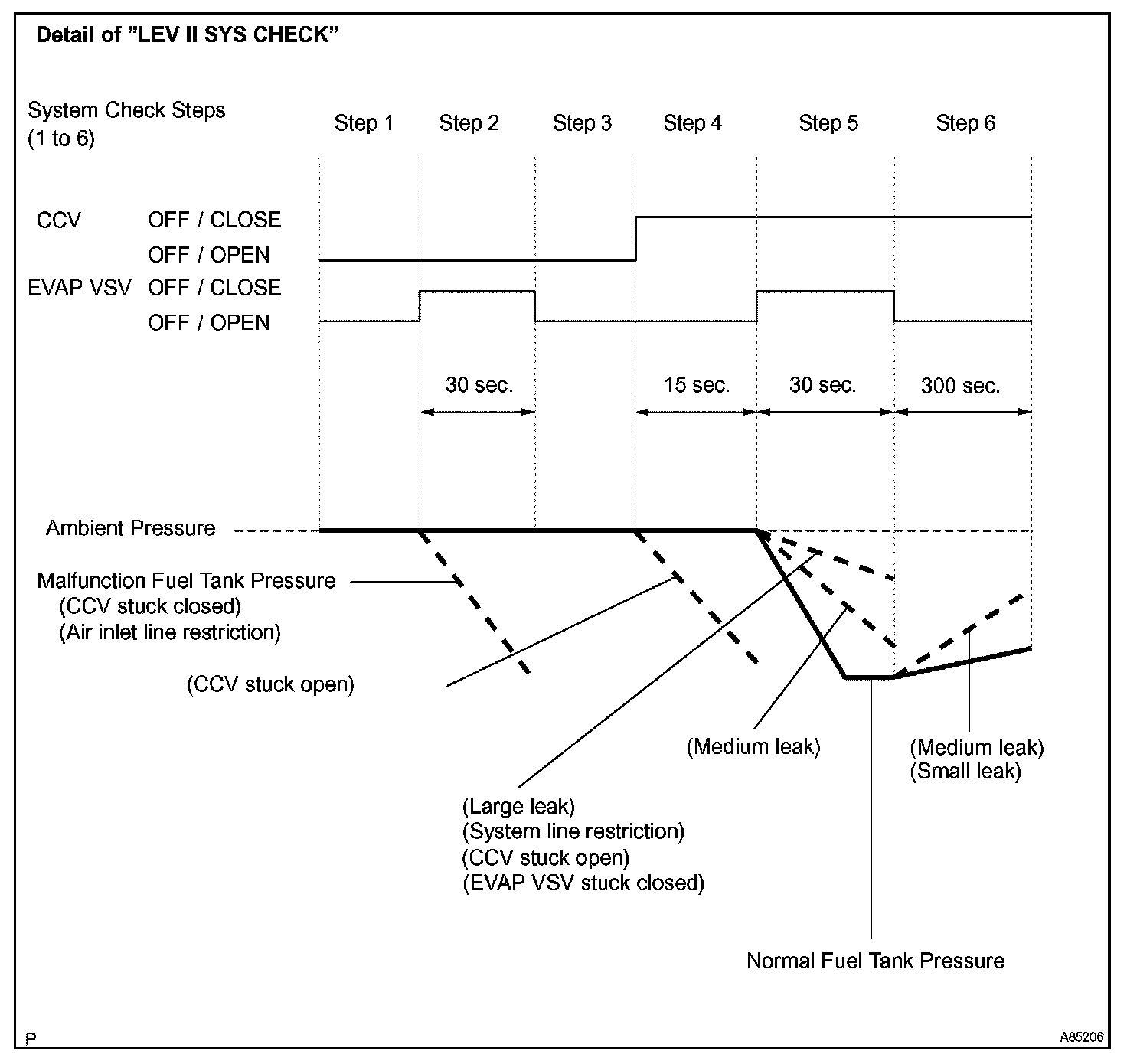 - When, during the LEV II SYS CHECK, the EVAP VSV is automatically closed or the LEV II SYS CHECK is automatically aborted.