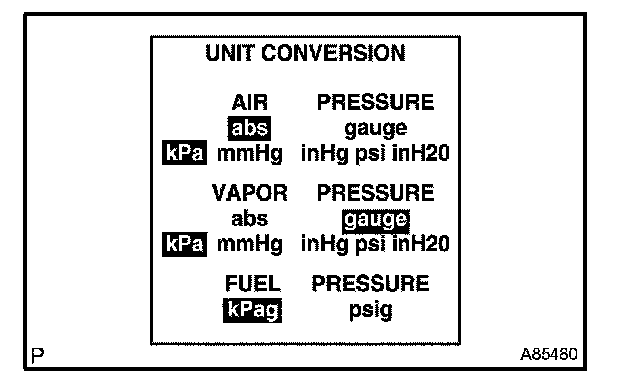 DIAGNOSIS/SETUP/UNIT CONVERSION/VAPOR PRESS.