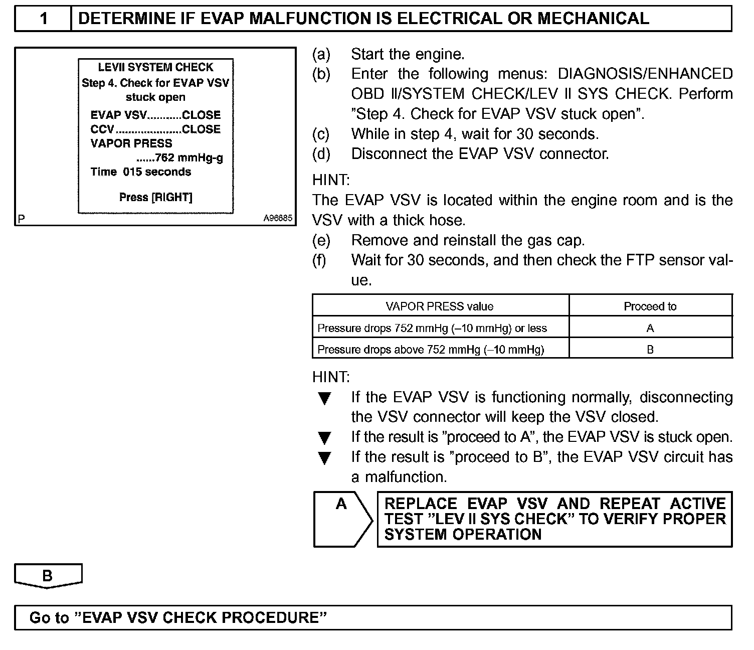 EVAP VSV CHECK PROCEDURE (SUB-DIAGNOSTIC PROCEDURE)
