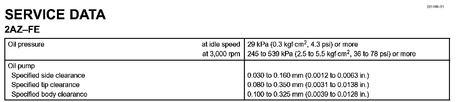 Lubrication - Service Data: