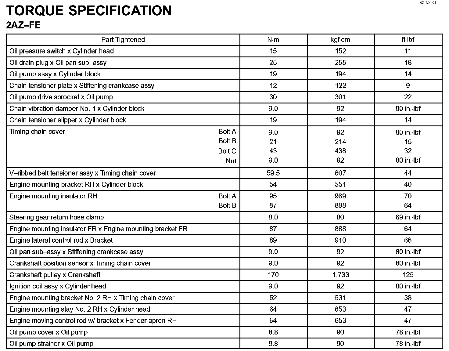 Lubrication - Torque Specification: