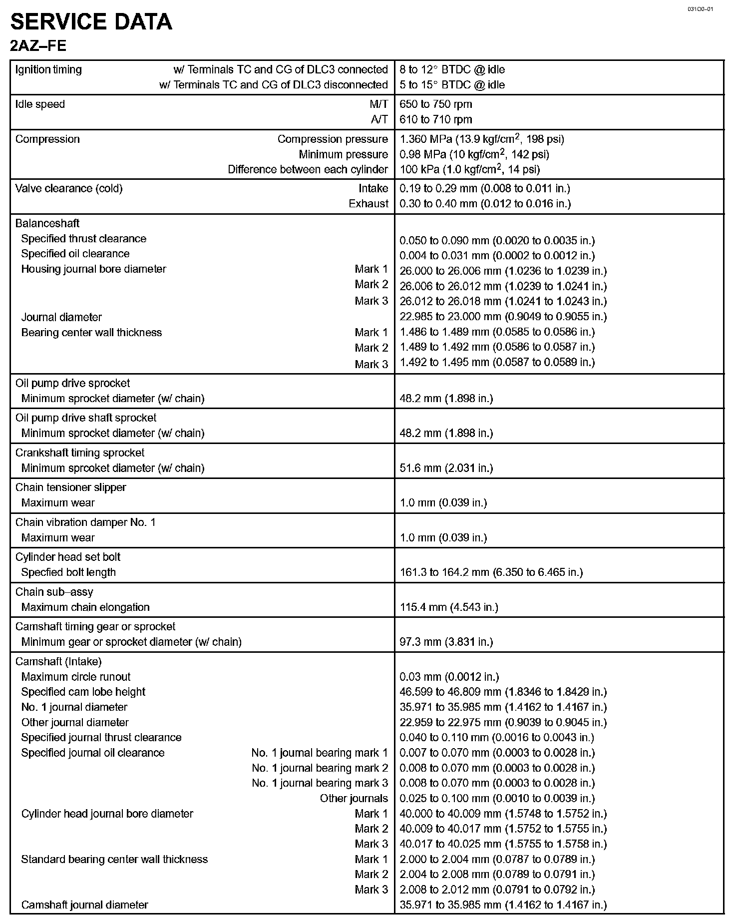Engine Mechanical - Service Data Part 1: