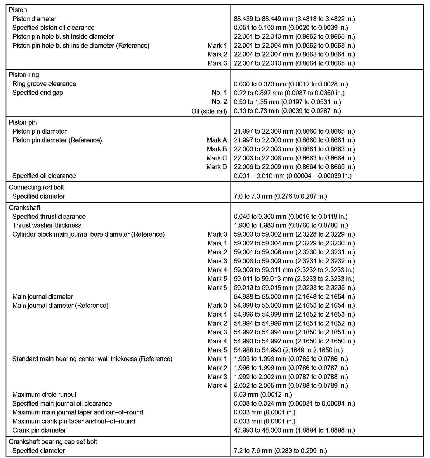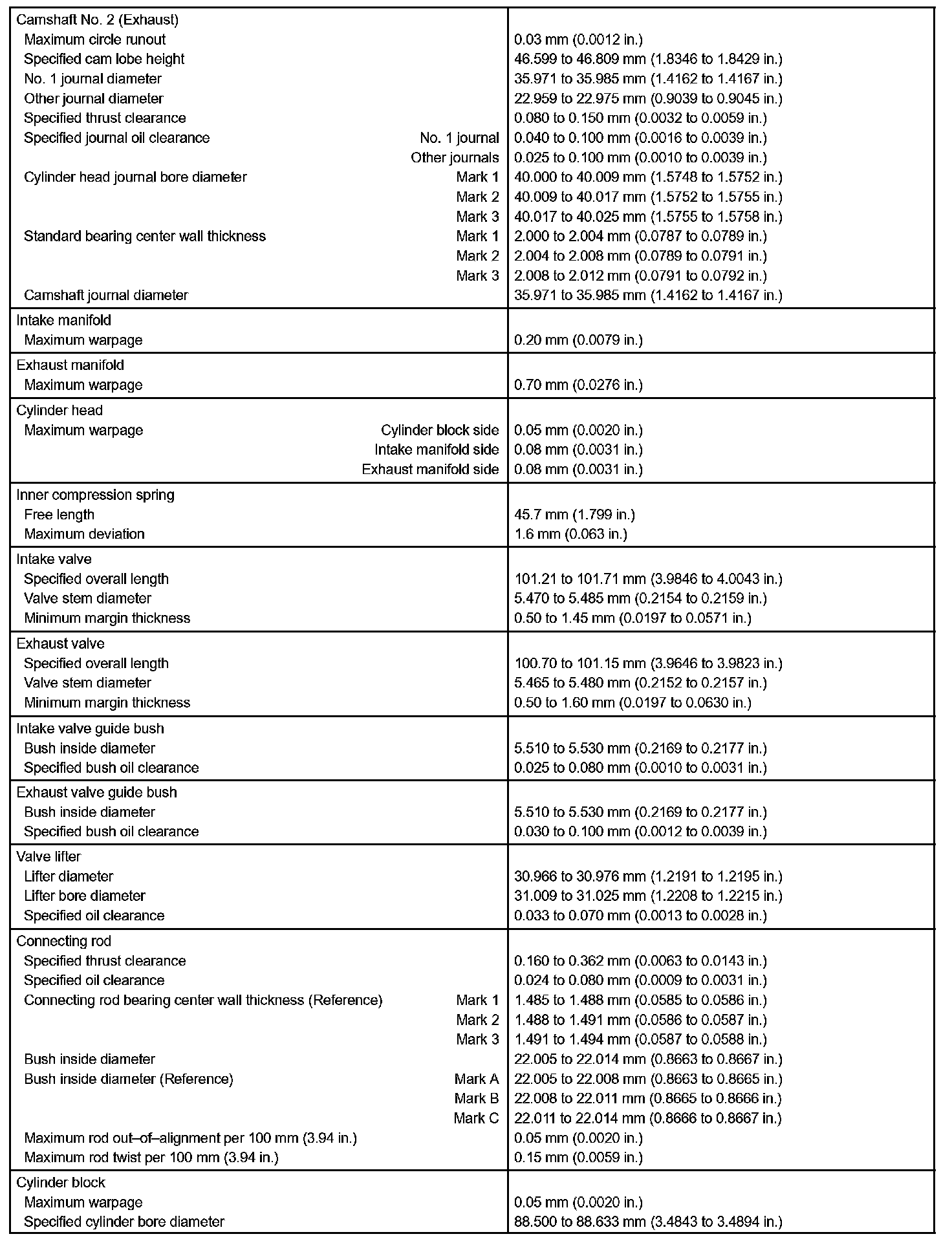 Engine Mechanical - Service Data Part 2: