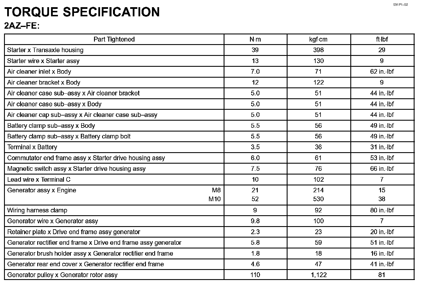 Starting & Charging - Torque Specification: