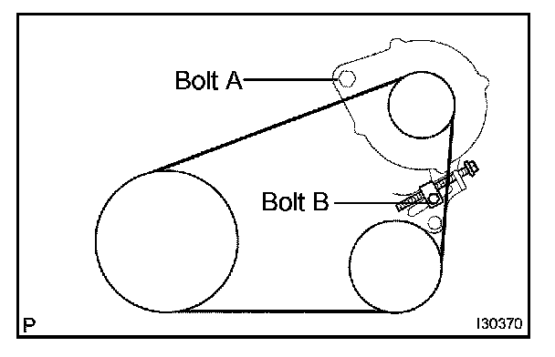 a. Apply drive belt tension by turning bolt C.