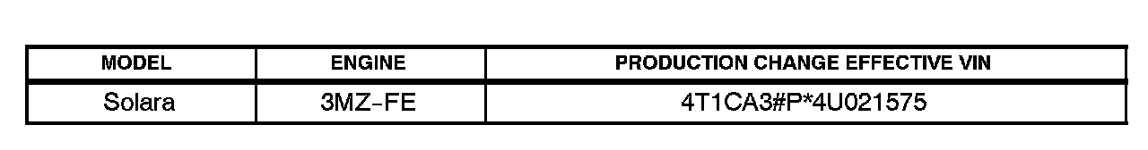 ^ 2004 model year Solara vehicles equipped with 3MZ-FE engine produced BEFORE the Production Change Effective VIN shown below.