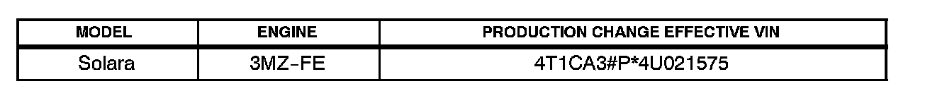 ^ 2004 model year Solara vehicles equipped with 3MZ-FE engines produced BEFORE the Production Change Effective VIN shown below.