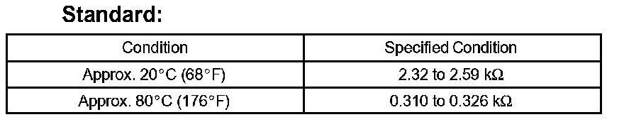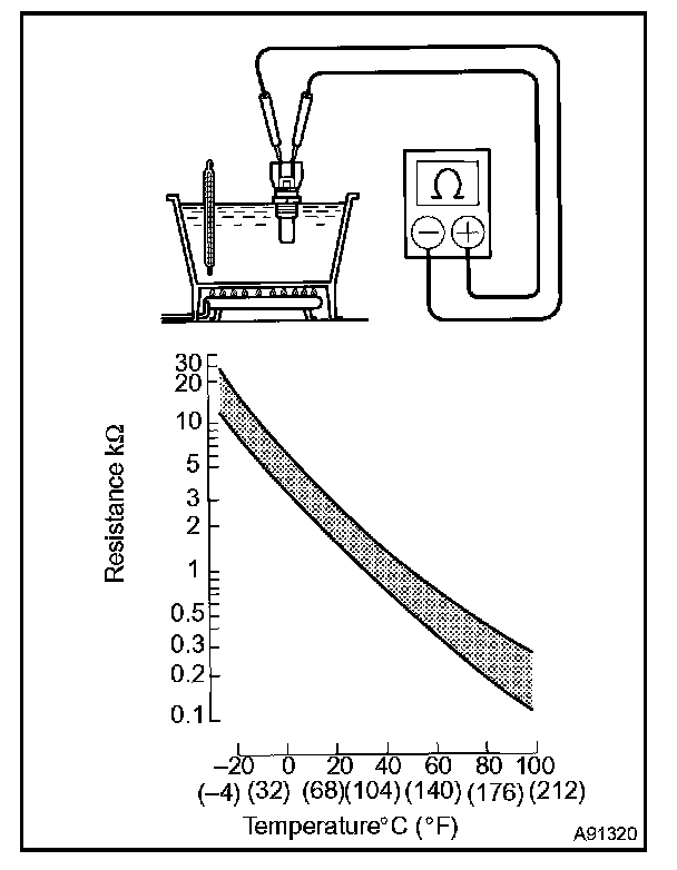 NOTE: If checking the engine coolant temperature sensor in the water, keep the terminals dry. After the check, wipe the sensor dry.