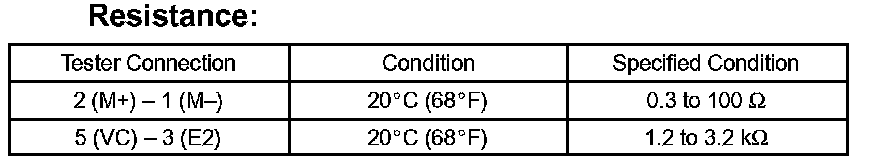 If the result is not as specified, replace the sensor.