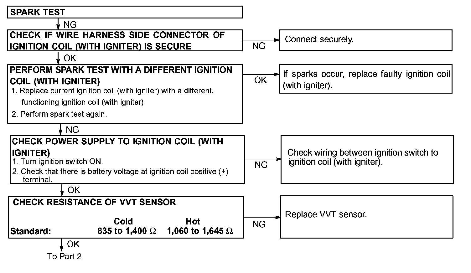 8. Check if sparks occur at each spark plug while the engine is being cranked.