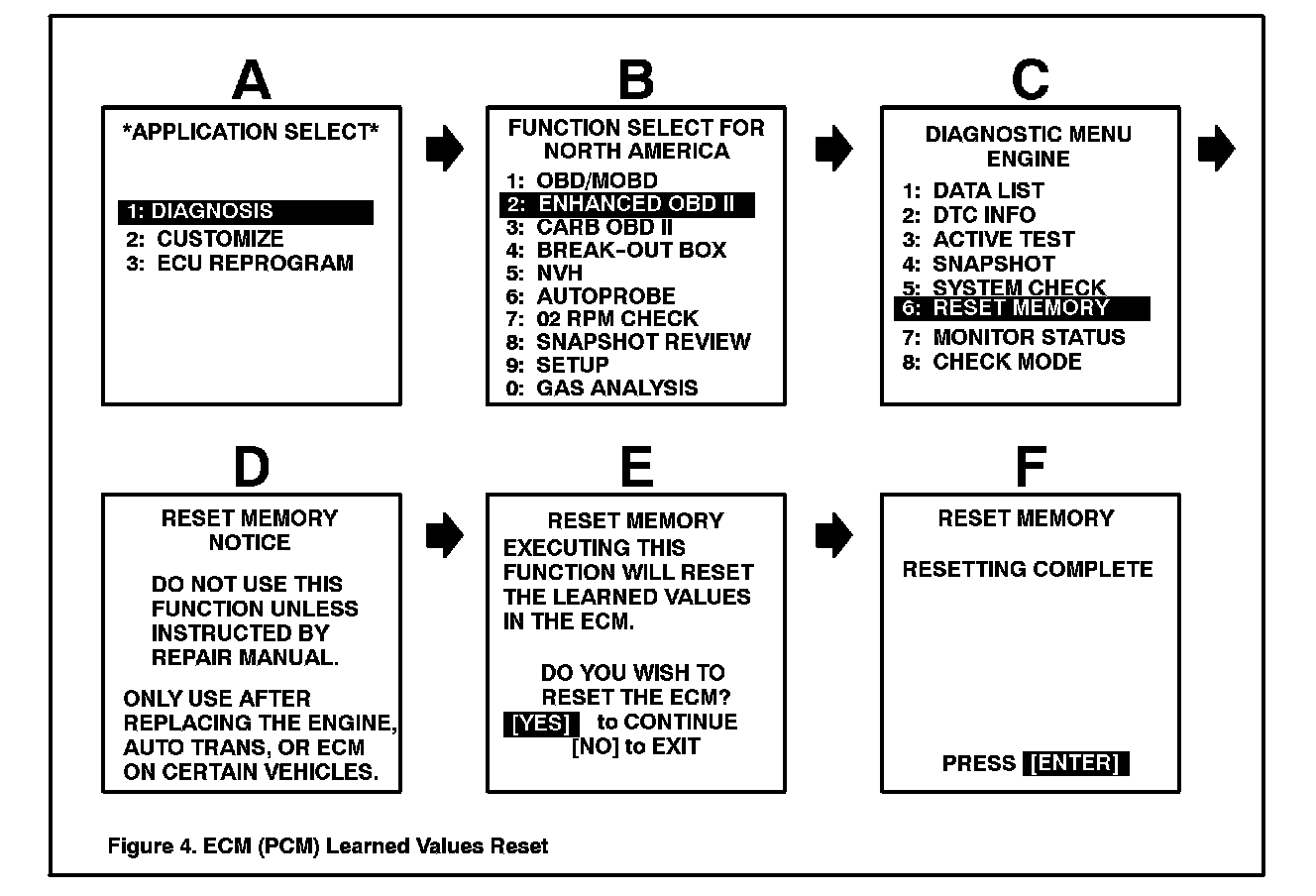 4. Reset the ECM (PC M) learned values using the Diagnostic Tester. Refer to the procedures below.
