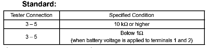 If the result is not as specified, replace the relay.
