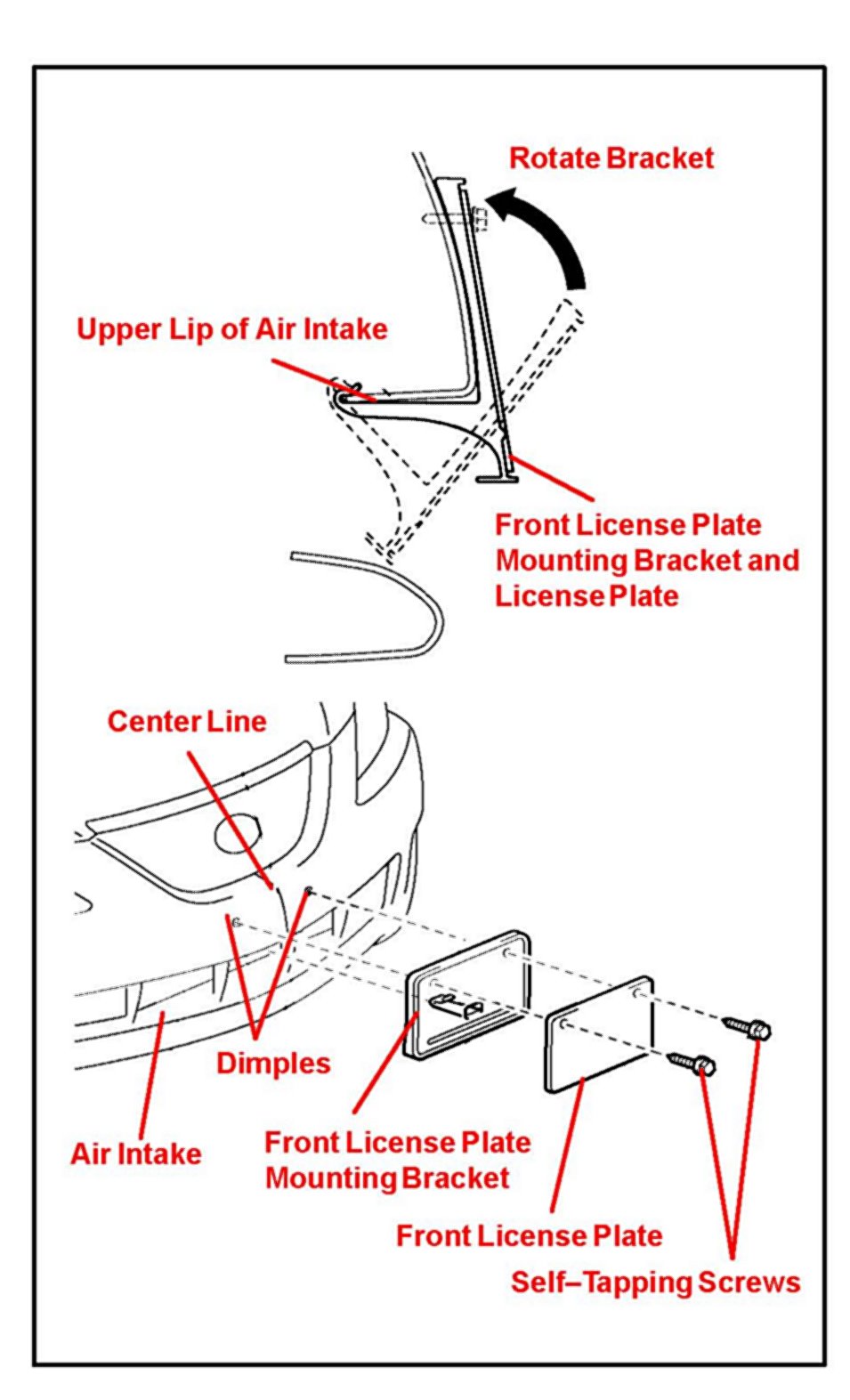 FRONT LICENSE PLATE MOUNTING BRACKET AND LICENSE PLATE INSTALLATION