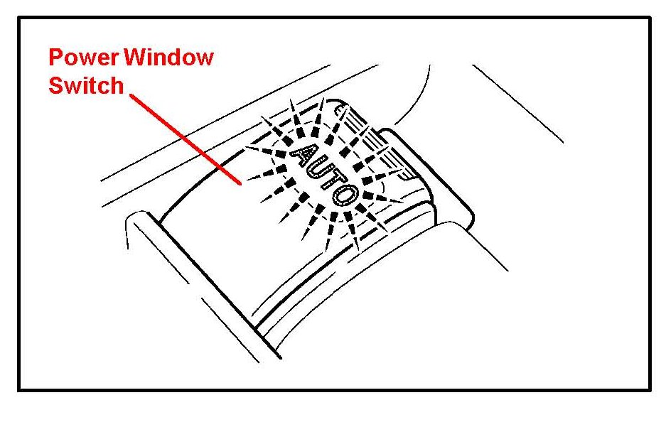 1. Turn the ignition switch to the "ON" position. At this time, the power window switch for the driver's door window should be blinking.