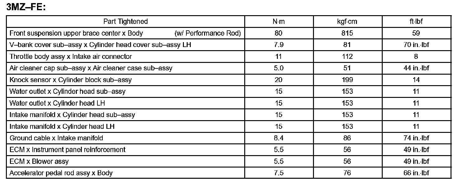 Engine Control System - Torque Specification: