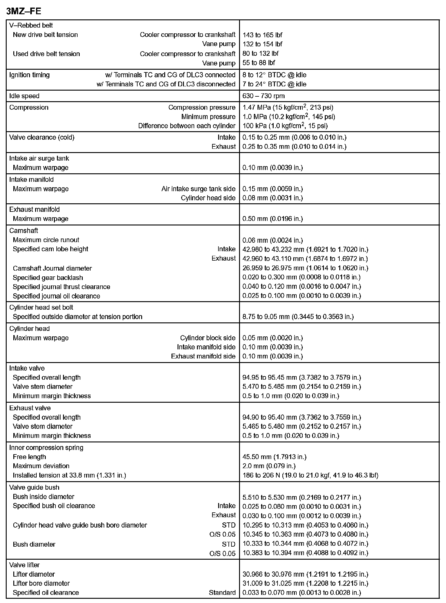 Engine Mechanical - Service Data Part 3: