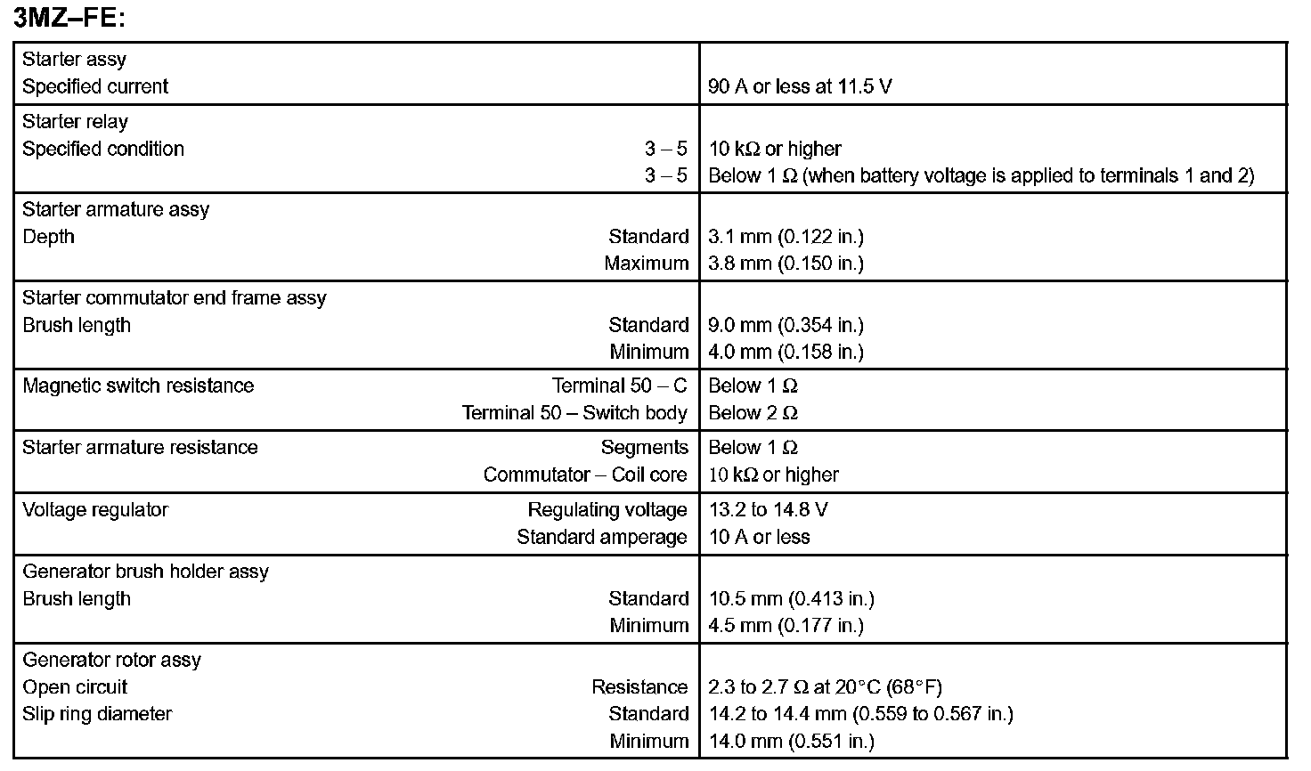 Starting & Charging - Service Data: