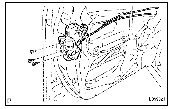 NOTICE: Be careful when removing the bolts as the window regulator may fall and become damaged.