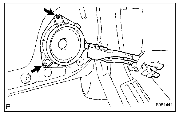 b. Using a drill of less than Dia 4 mm (0.16 in.), drill out the 3 rivet heads and remove the speaker.