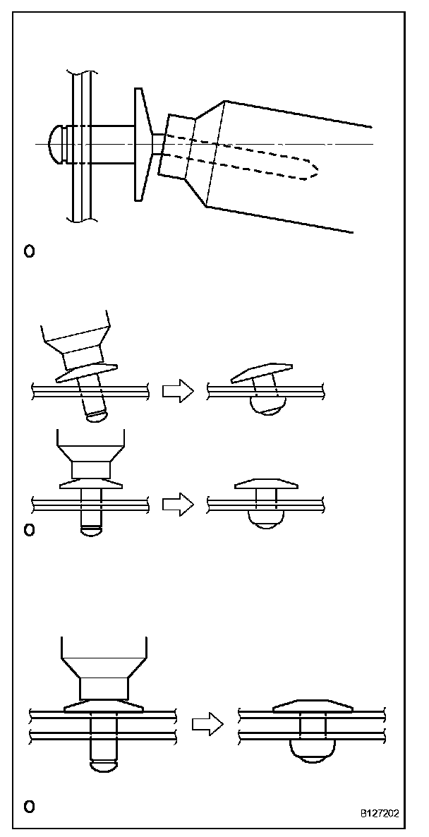 - Be sure to gently place the drill perpendicular to the rivet to prevent the rivet hole and the drill itself from being damaged.