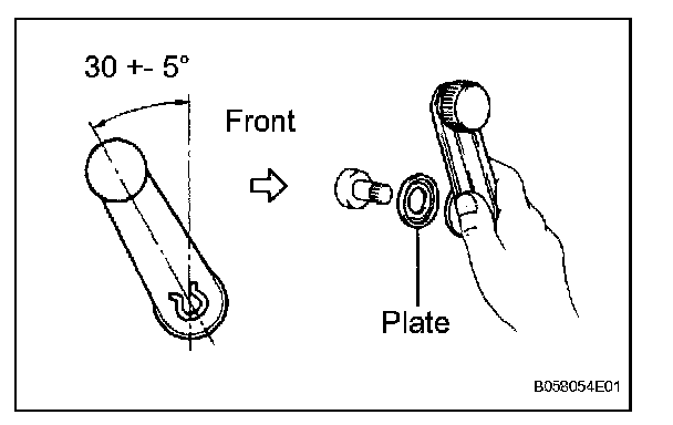 HINT: With the door window fully closed, install the plate and regulator handle with the snap ring as shown in the illustration.